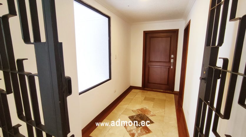 Hall de entrada al departamento con puerta extra de seguridad y piso de mármol