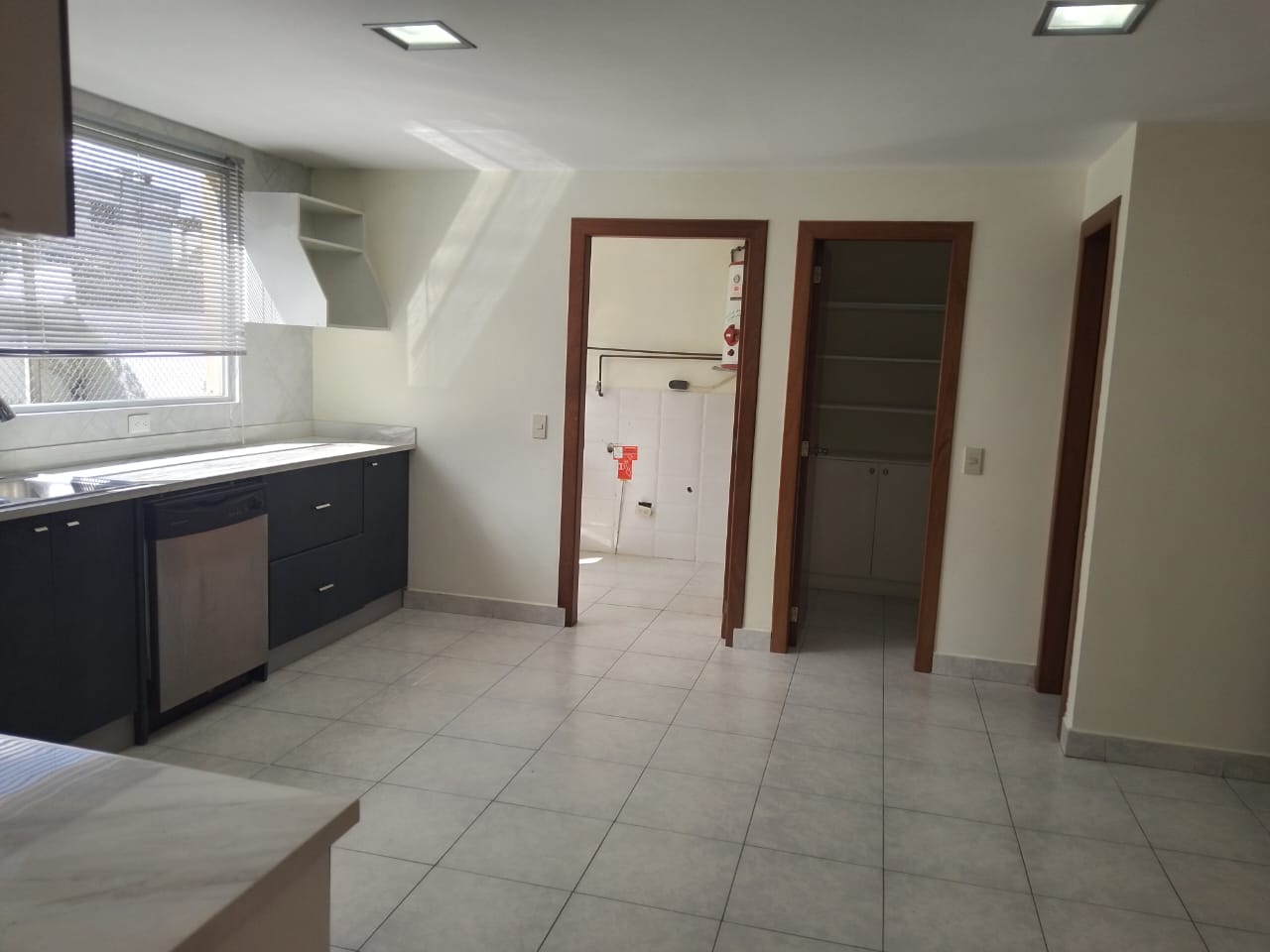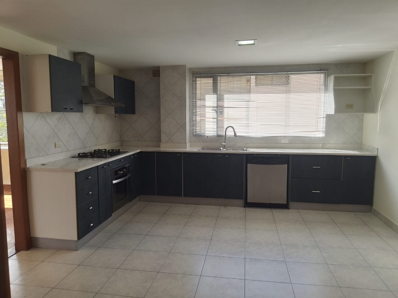 ✅Cocina cerrada con muebles altos y bajos, mesón de granito