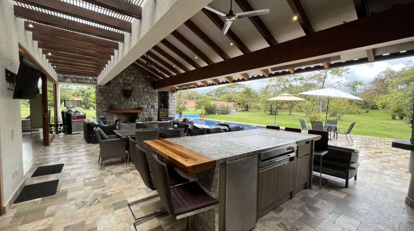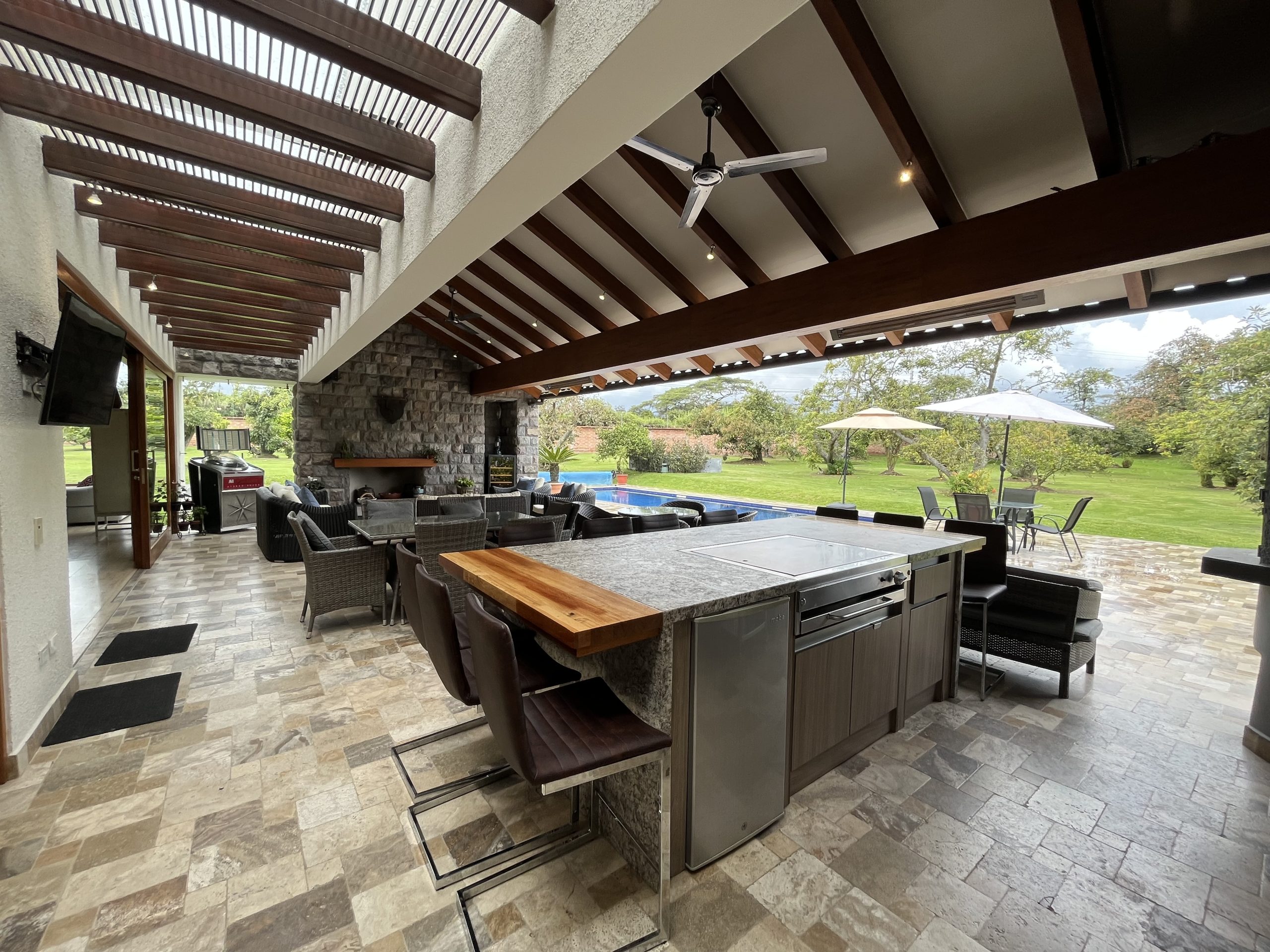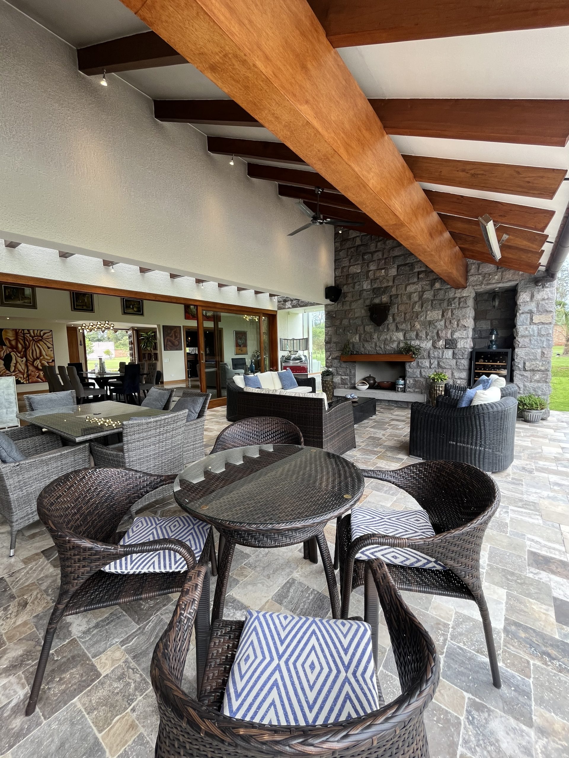 Sala de exteriores con chimenea.